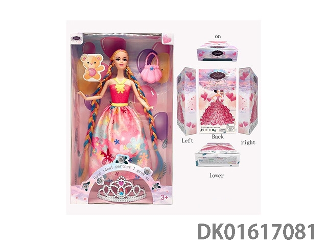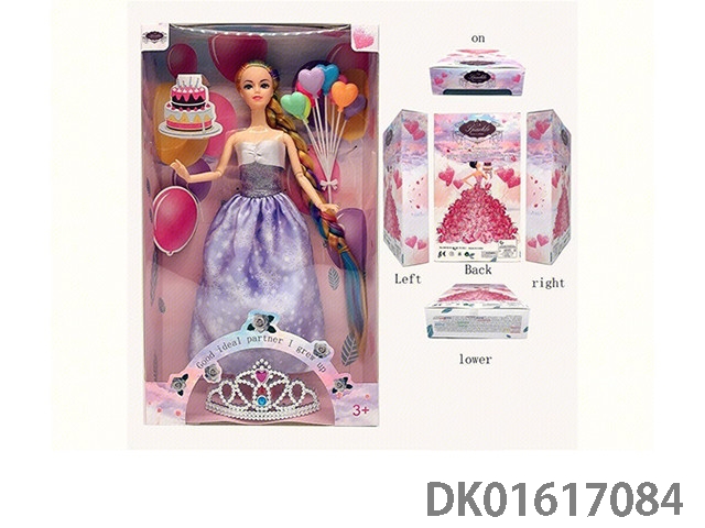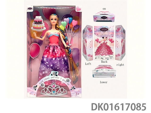 11.5寸9关节实身彩色长辫时尚晚装芭比+8颗气球+儿童可戴皇冠