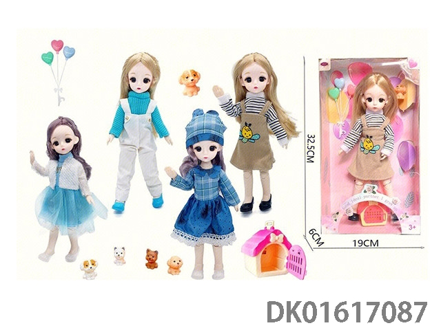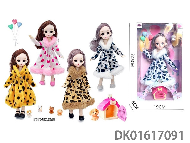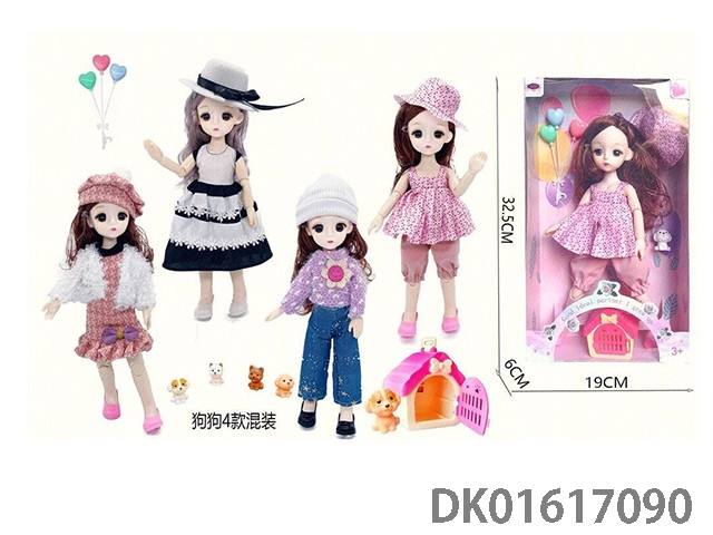 12寸30厘米4款混装3D真眼活动关节高品质bjd时尚娃娃+气球+宠物狗+狗笼