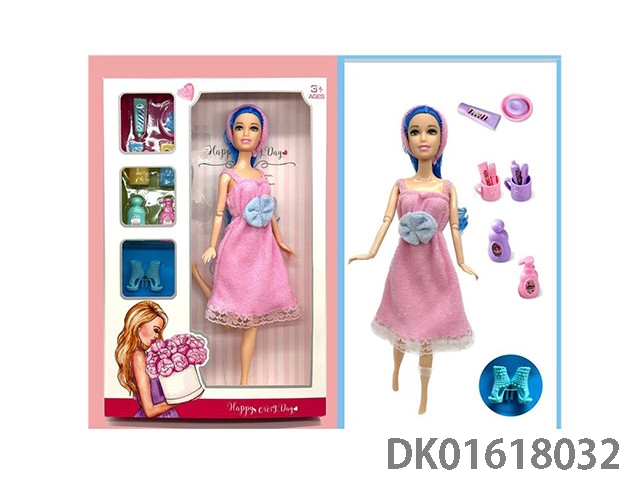 11.5寸13关节实身浴袍时装芭比娃娃+洗漱套装吸塑+鞋