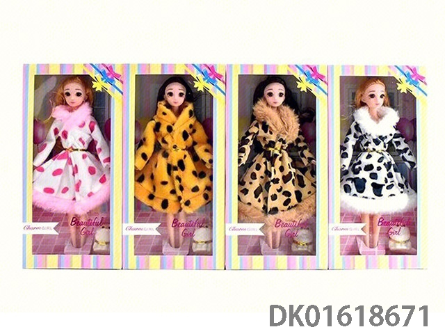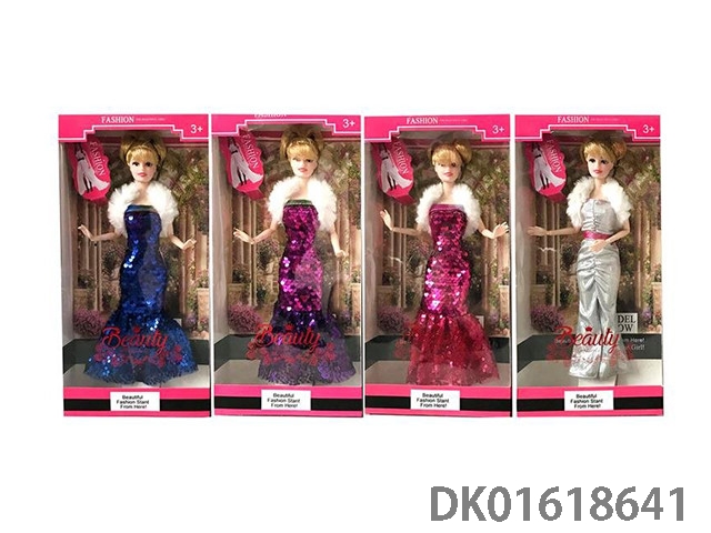 11.5寸4款混装彩色珠片礼服裙+毛领10关节大腿实身芭比