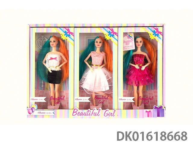 11.5寸3款混装双色辫子时装裙套装10关节大腿实身芭比3只装