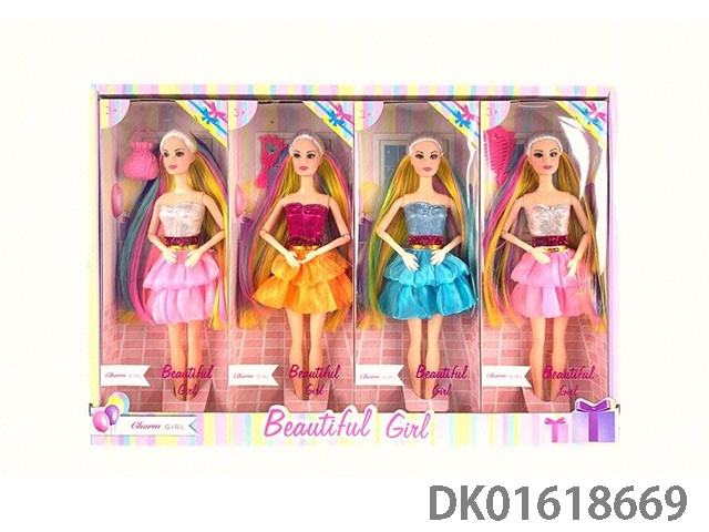 11.5寸彩色头发时装裙套装10关节大腿实身芭比4只装