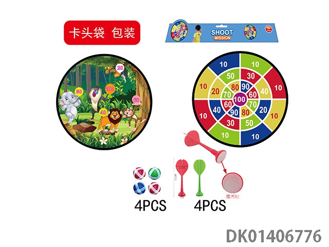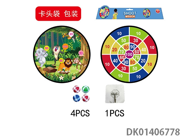 74厘米动物世界双面折叠标靶配粘球+飞镖