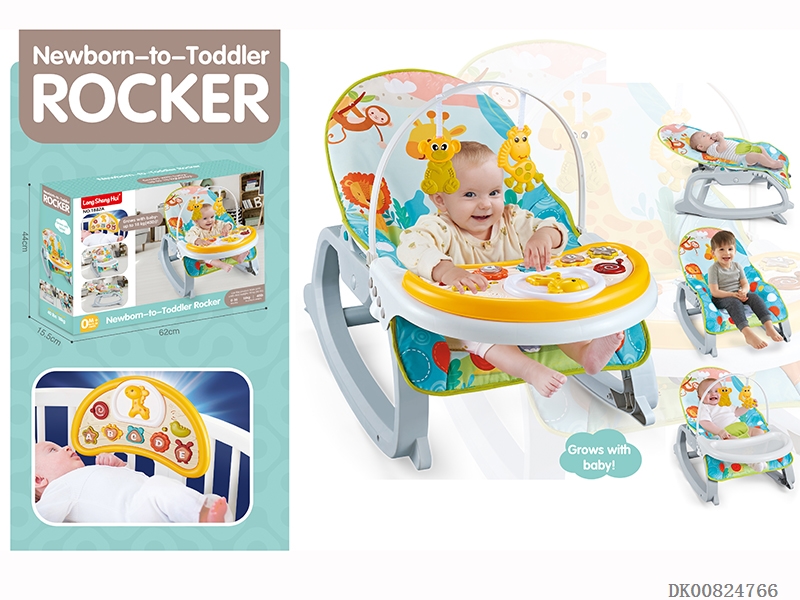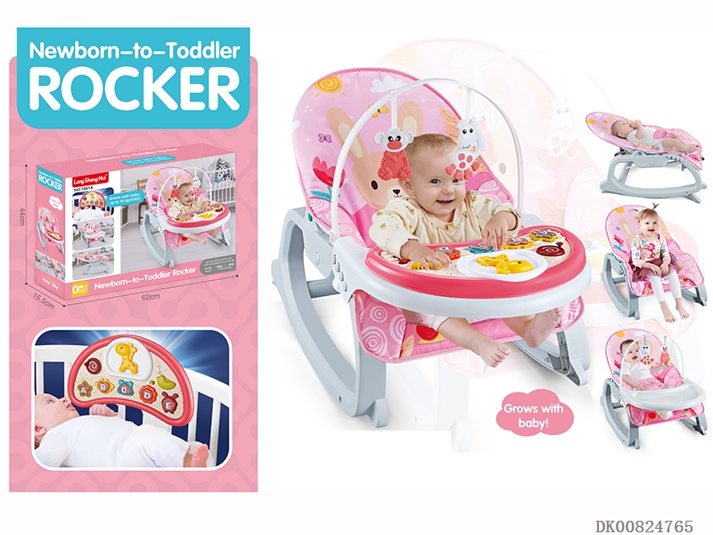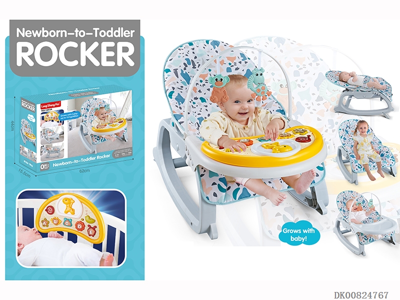 3合1音乐振动婴儿摇椅+餐台+婴儿床头铃电子琴