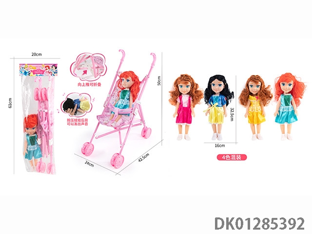16寸空身活眼女娃带英文IC配塑料手推车
