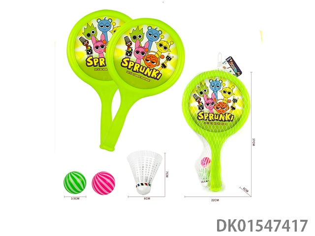 中圆形节奏盒子球拍,带2粒乒乓球+1粒羽毛球