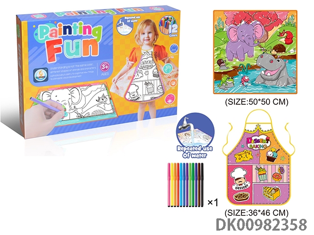 2PCS糕点甜品涂鸦围裙和动物世界儿童涂鸦布