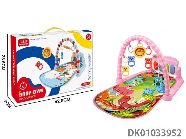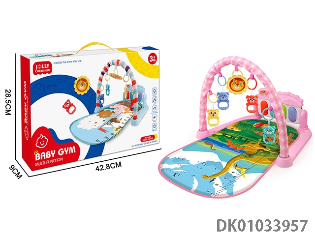 恐龙世界图案脚踏琴婴儿毯粉红色