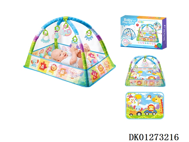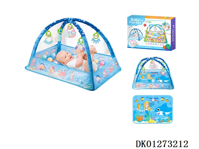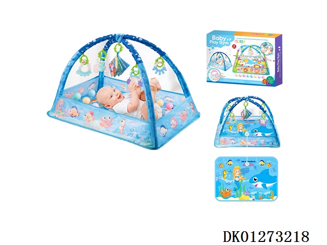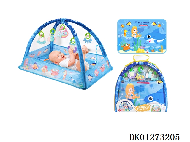 (蓝+音乐盒)婴儿健身毯/宝宝游戏毯新生儿爬行垫幼儿地毯健身架床中床摇篮围栏