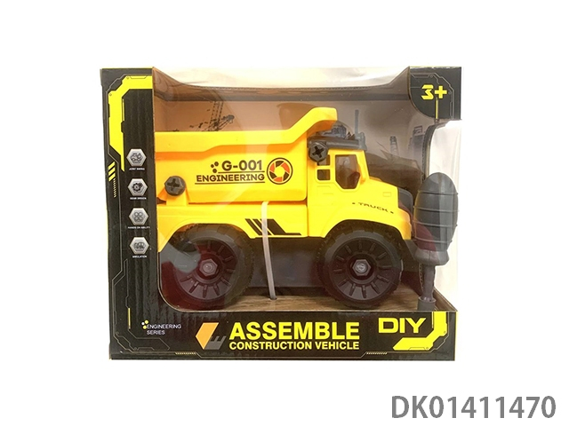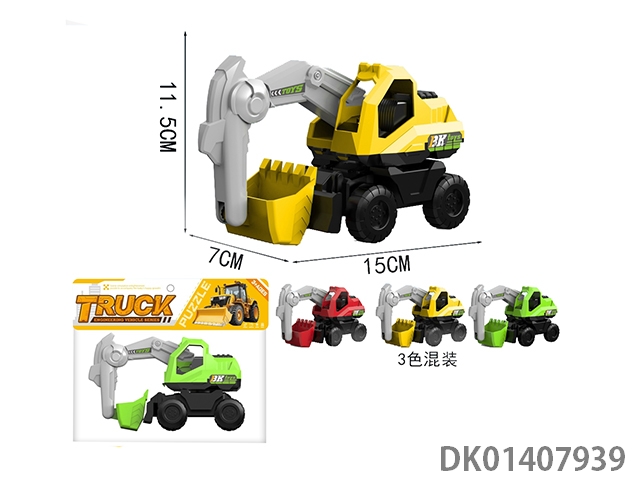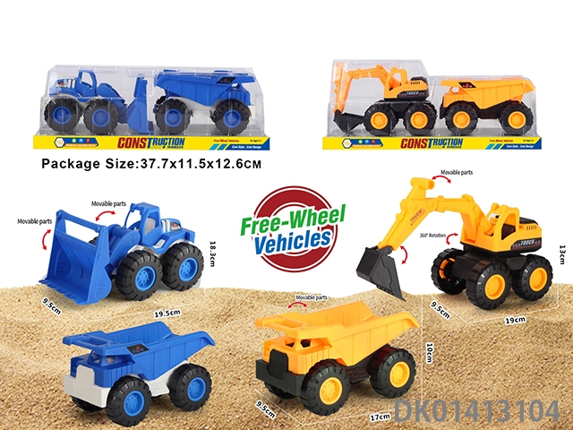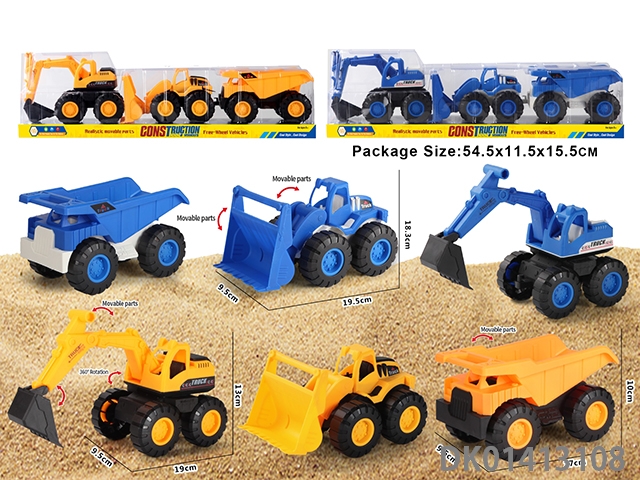 滑行建筑工程车,蓝色、黄色混装3款车混装
