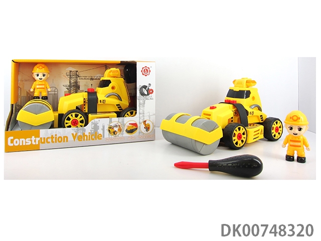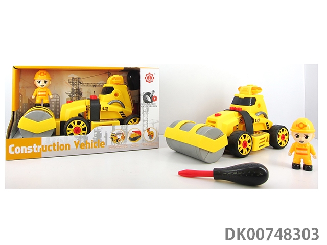 (带人物)惯性功能带灯光音乐DIY自装积木工程建设压路机
