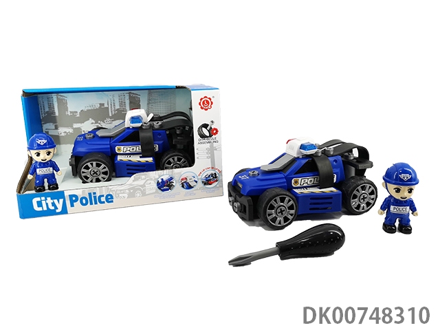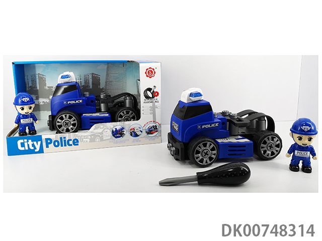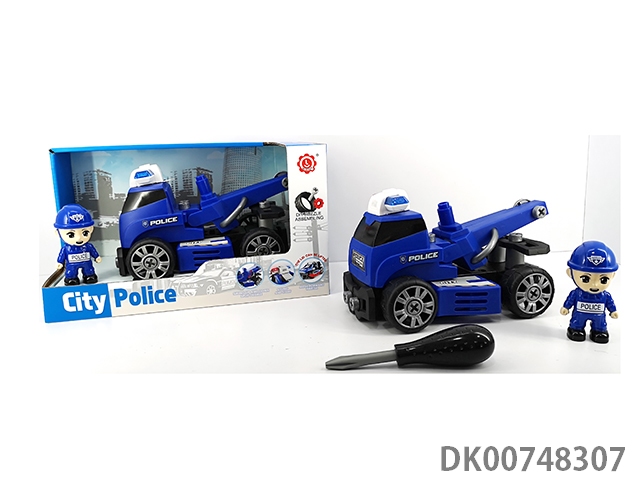 (带人物)惯性功能带灯光音乐DIY自装积木城市警察拖车