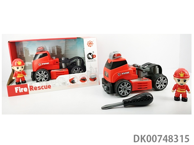 (带人物)惯性功能带灯光音乐DIY自装积木消防救援拖车