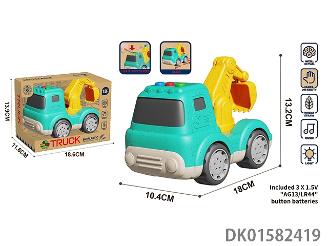 麦秆料卡通滑行工程翻斗车(带灯光音乐)