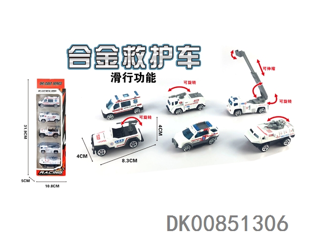 1:55合金滑行救护车5PCS