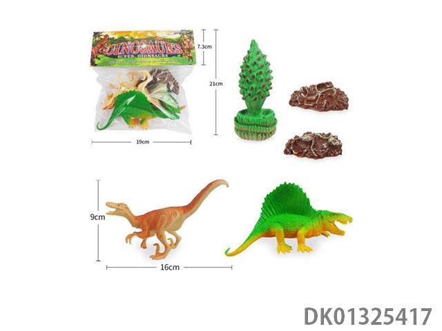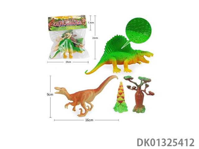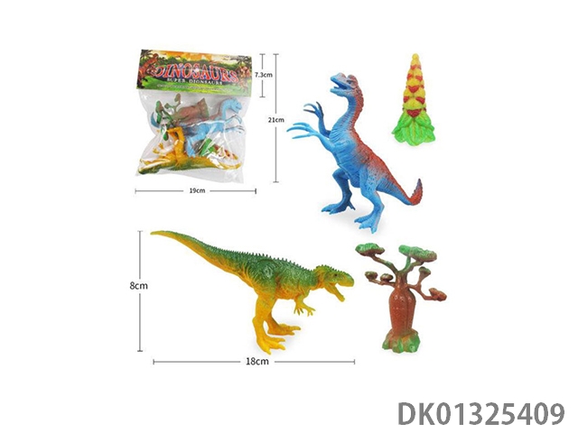 4件套恐龙模型套装玩具(7寸镰刀龙+7寸南方巨兽龙+猴面包树+塔黄)