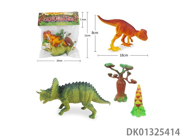 恐龙模型套装7寸微角龙+7寸大鼻角龙+猴面包树+冰之花塔黄4件套恐龙玩具