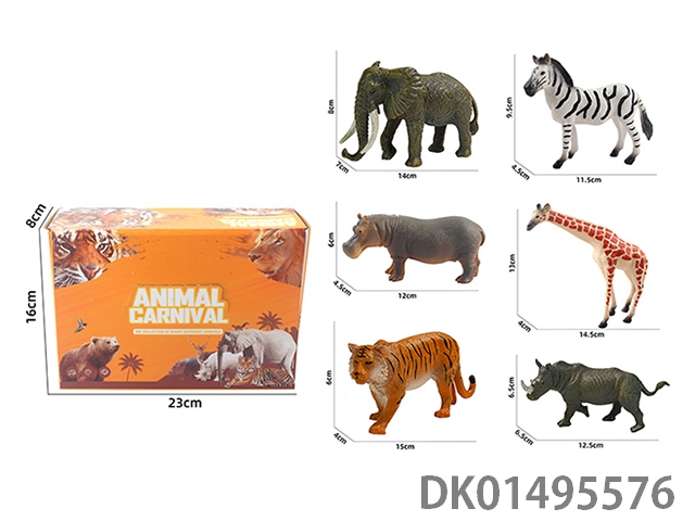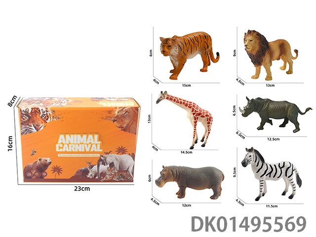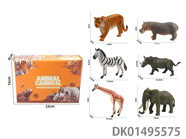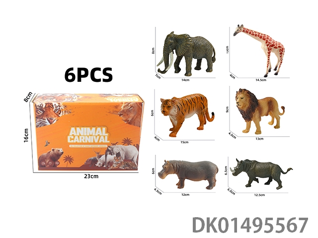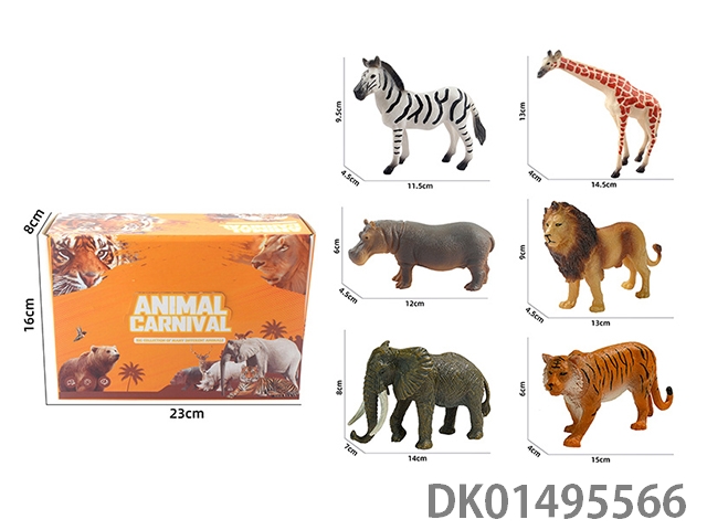 野生动物狮子老虎大象长颈鹿河马斑马大合集彩盒6款一盒装精美彩绘