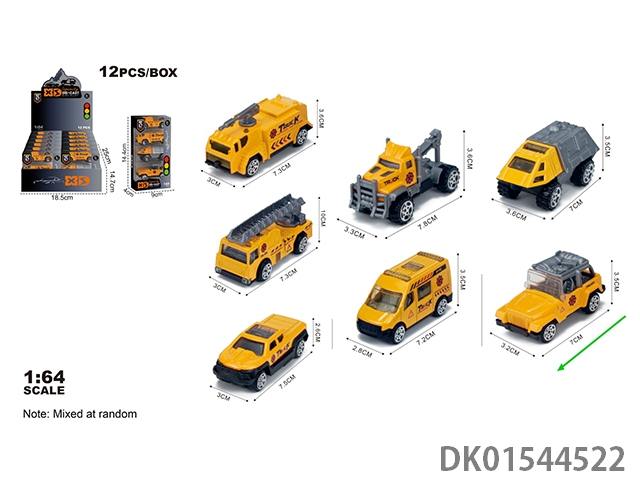 英文1:64压铸锌合金救援6只装车模 12盒/展示盒(7款混装)