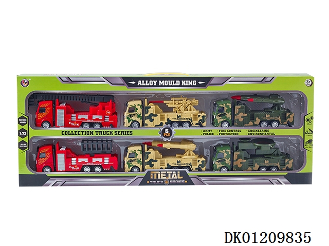 1:32合金消防,军绿军车,沙漠黄军车混款套盒, 6只