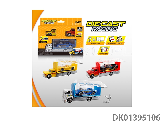 1:64 3只拖车带2只小合金车