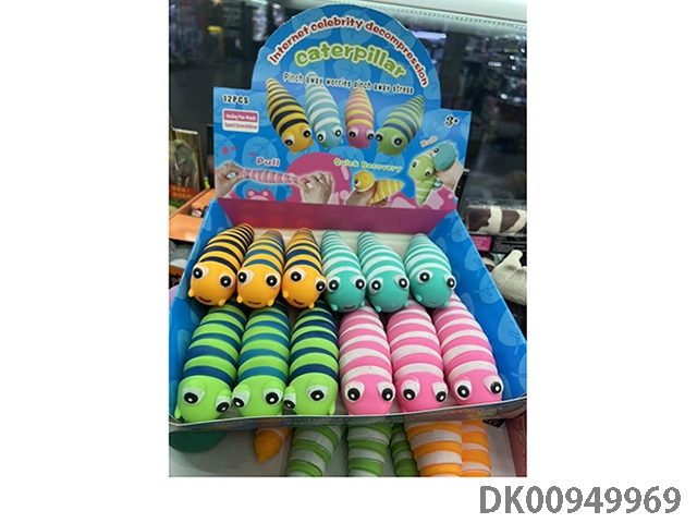 爆款跨境解压减压毛毛虫TPR软胶虫子鼻涕虫捏捏乐面粉填充玩具12pcs/box