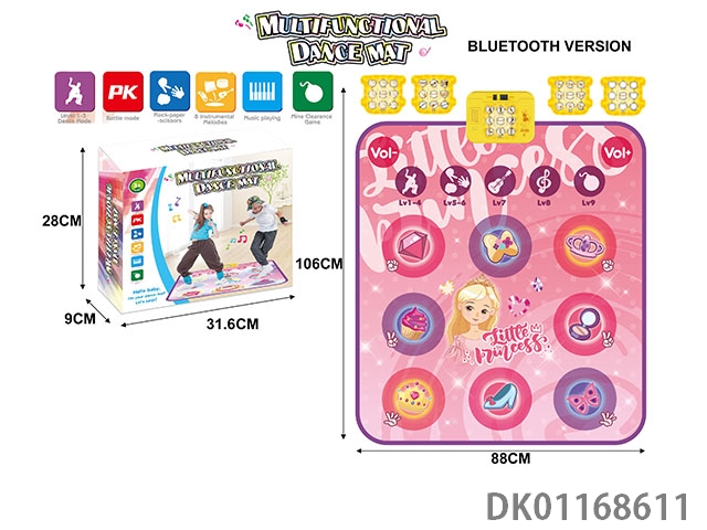 特大号多功能插卡电动灯光音乐毯跳舞毯游戏毯垫粉紫色女孩款(手机蓝牙版/8个跳舞琴键带LED板)