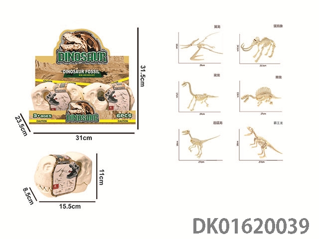 恐龙骨架头收纳盒(6款恐龙骨架)6只装