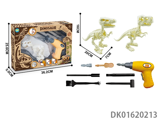 恐龙骨架头收纳盒(12只三寸恐龙+2棵树+石头+1个围栏)6只装