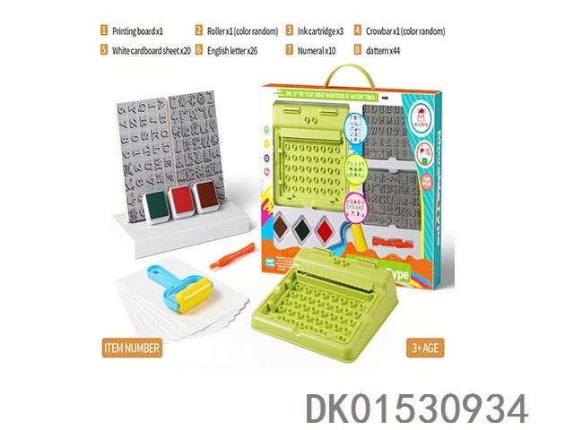 (恐龙/绿-5色泥)80个活字印章印刷机