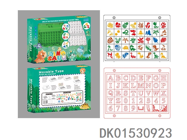 (恐龙/绿-3色泥)80个活字印章印刷机