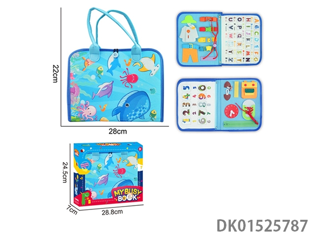 蒙氏儿童早教益智蓝色3页浅蓝海洋世界带魔术贴