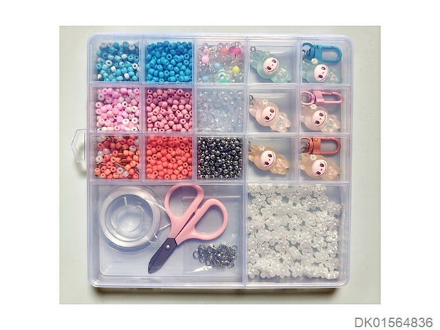 4mm米珠+字母珠+吊坠+剪刀线龙虾扣圈(15格)