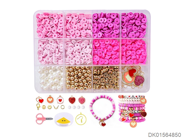 字母珠+软陶珠+隔珠+吊坠+耳钩+龙虾扣包扣开口圈剪刀线(12格)