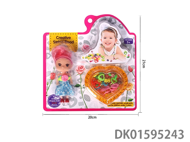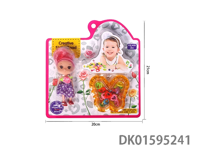 公仔、黄色桃心形珠盒DIY串珠玩具套装片装
