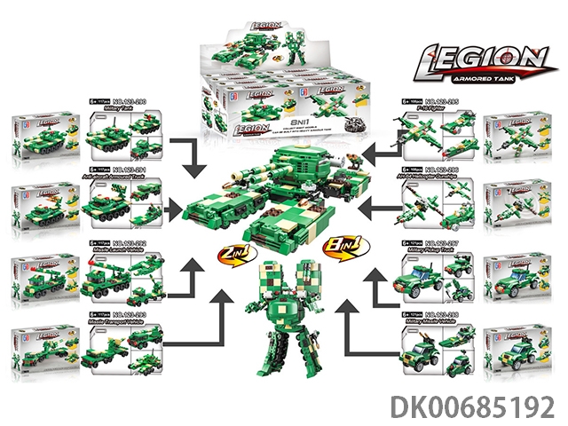 益智积木军事8合1猛犸坦克(108-121PCS)8款混装