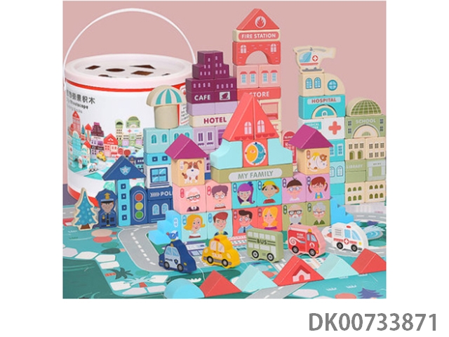 100粒街景积木(桶)+24粒人物关系积木+20片底板