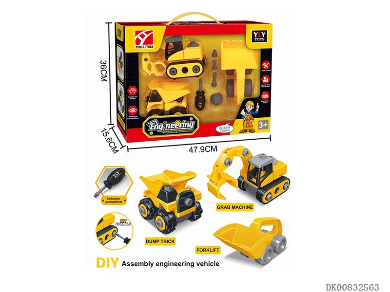 工程拼装大套装 (小铲车+抓斗机+自卸车)
