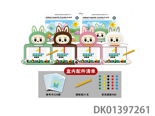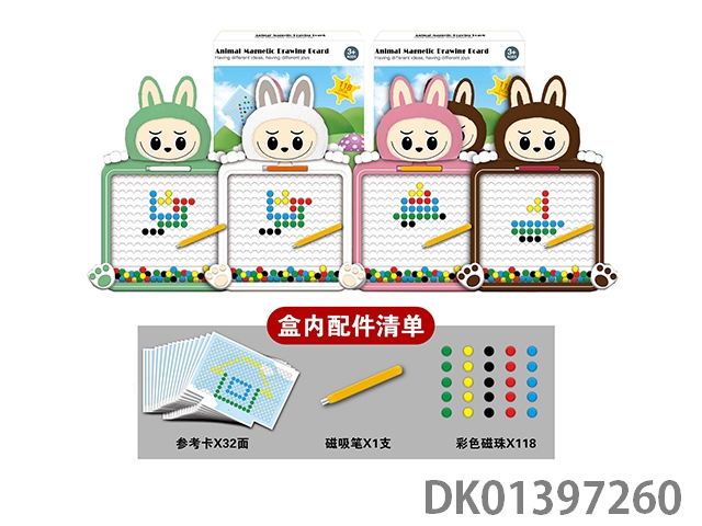 益智动物磁性画板配60粒珠子+磁吸笔+参考卡20片4款混