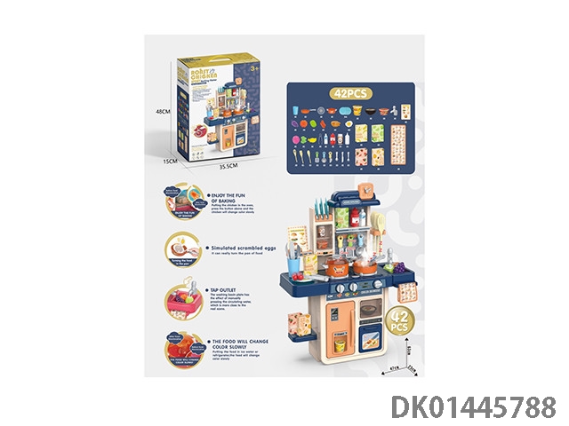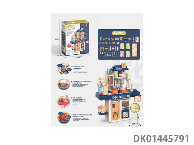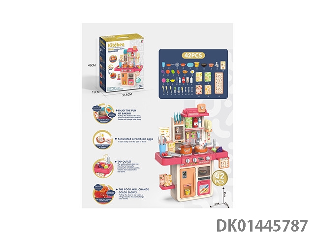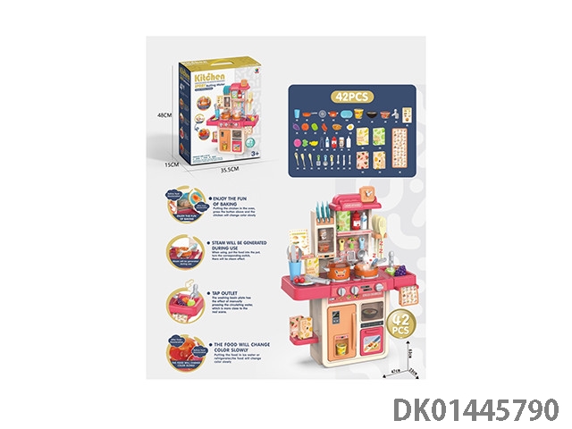 63CM蒸烤益智厨房,过家家,餐具台,(蒸烤,新奇煎锅,变色食物,灯光,出水功能)42PCS,不包电3*1.5AA