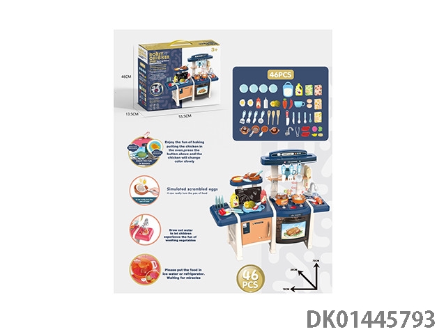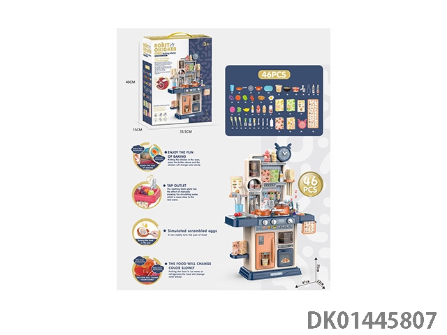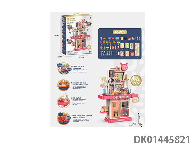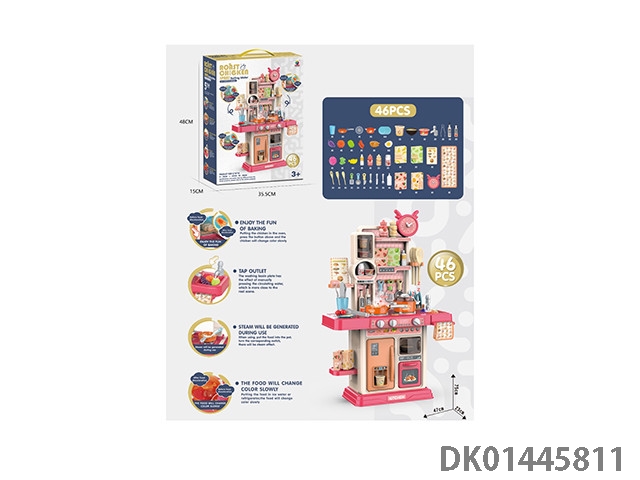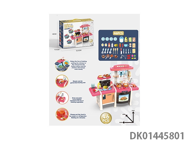 75CM蒸烤益智厨房,过家家,餐具台,46PCS,(蒸烤,新奇煎锅,变色食物,灯光,出水功能)不包电3*1.5AA
