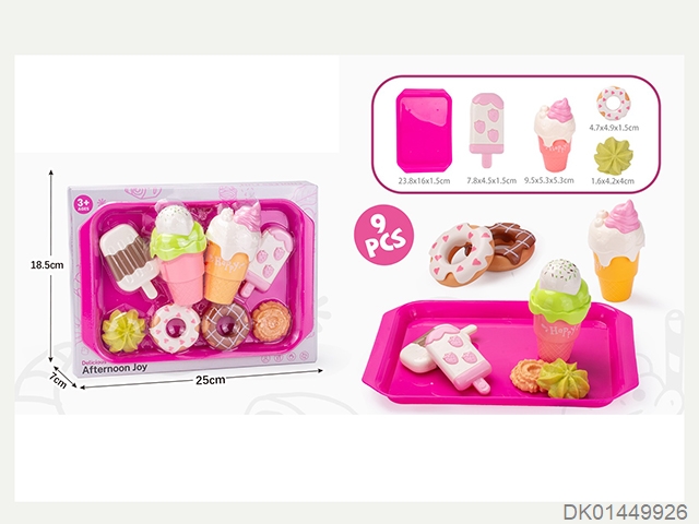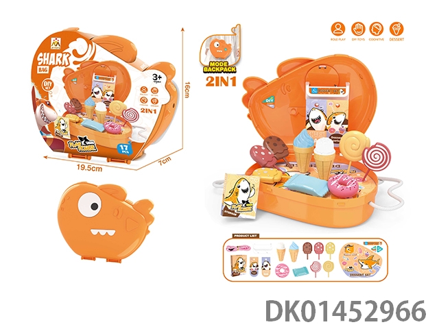 卡通益智儿童仿真鲨鱼造型甜品冰淇淋小背包过家家玩具17PCS