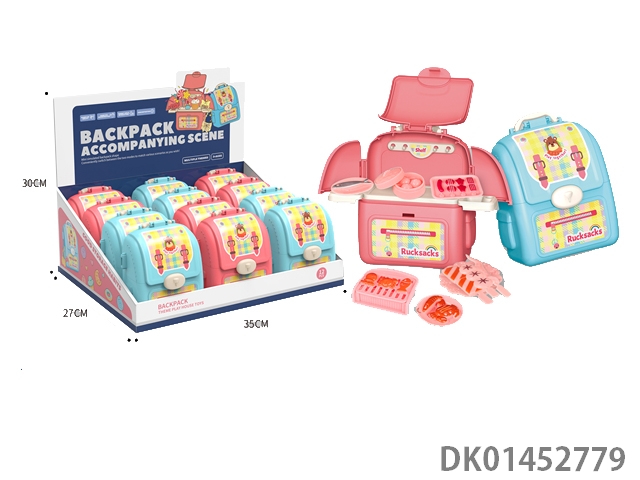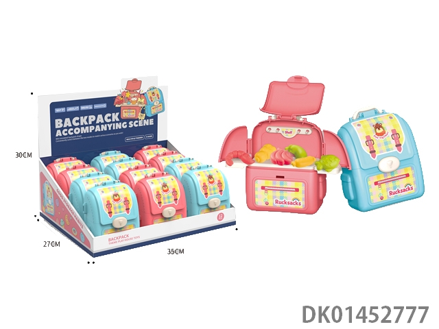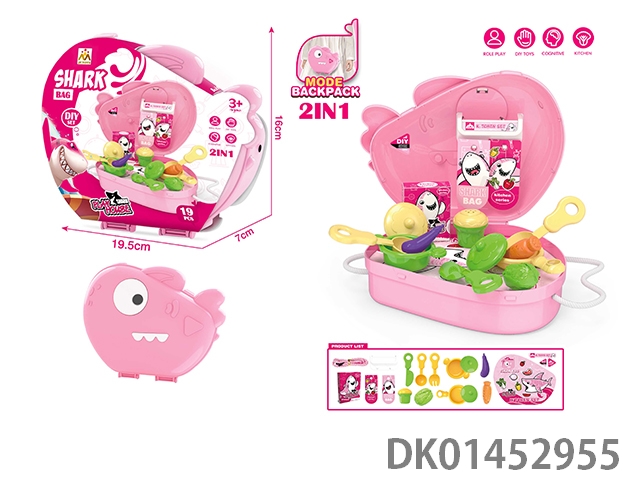 卡通益智儿童仿真鲨鱼造型餐具角色扮演套装小背包过家家玩具19PCS
