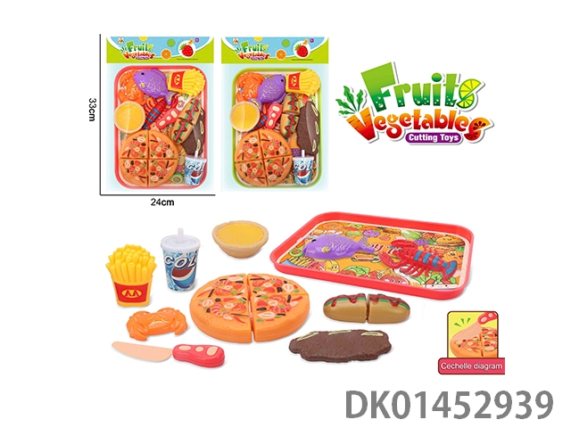 仿真点心披萨箱餐盘餐具套装切切乐过家家玩具15PCS