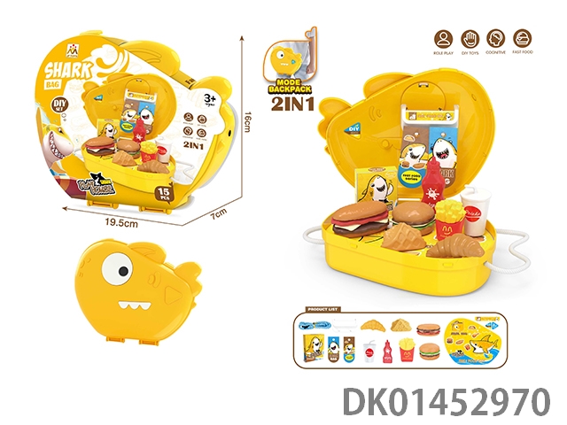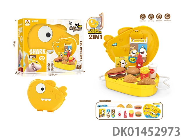 卡通益智儿童仿真鲨鱼造型汉堡可乐餐具小背包过家家玩具15PCS