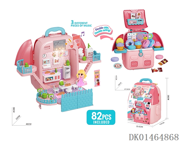 过家家4合1变形甜品场景背包带灯光音乐(82PCS)