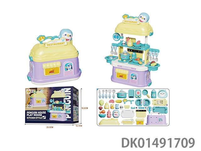 卡通益智多功能餐具台/蔬果台企鹅图案过家家玩具