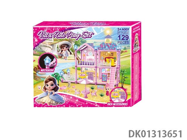 夜光DIY公主过家家大别墅玩具套装(DIY拼装女孩梦想屋豪宅)129PCS