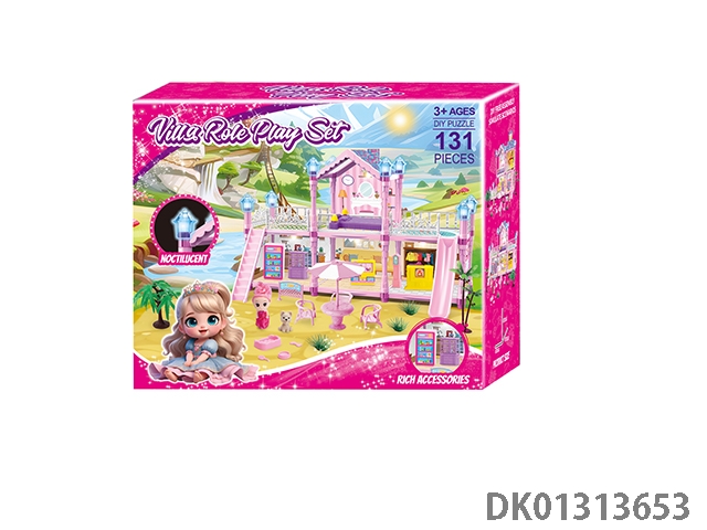 夜光DIY公主过家家大别墅玩具套装(DIY拼装女孩梦想屋豪宅)131PCS