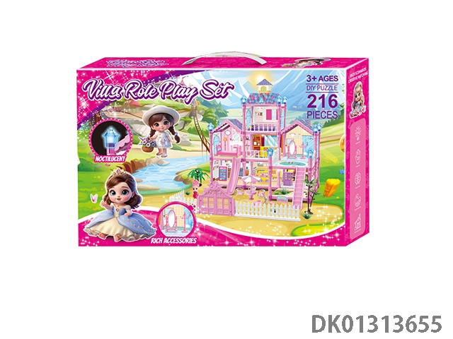 灯光夜光DIY公主过家家大别墅玩具套装(DIY拼装女孩梦想屋豪宅)216PCS